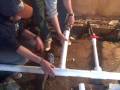 Video by Valerie, showing work progress remodeling Twin Oaks community water system plumbing, replacing badly corroded steel and copper pipe with PVC. At work: McCune and Mushroom.